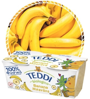 Το Teddi είναι βιολογικό γιαούρτι για παιδιά που παράγεται από την Ιταλική εταιρία Scaldasole. Το αγνό γάλα και τα ζουμερά βιολογικά φρούτα κάνουν μας δίνουν ένα γευστικό και υγιεινό γιαούρτι.